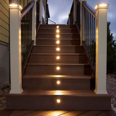 Deck Lighting offer a wireless remote control with dimmer, timer settings, dusk/dawn settings and motion sensing features.